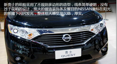 据介绍,目前在售的日产Quest贵士,外观上,新贵士采用雕刻流线造型设计,线条洗练硬朗,凸显大气之感,并运用大量镀铬装饰,蕴含锋芒力量,彰显出新贵士车主沉毅刚稳的气质。与此同时,它还拥有5109*1970*1852 mm的超大车身尺寸,轴距达到3000mm,宽大的车身尺寸使车内空间宽敞,即使坐满7人也没有丝毫局促之困。Multi-layer人体仿生学真皮座椅,具备良好的支撑性及舒适性,让商务领袖舒心享受长途商旅活动。