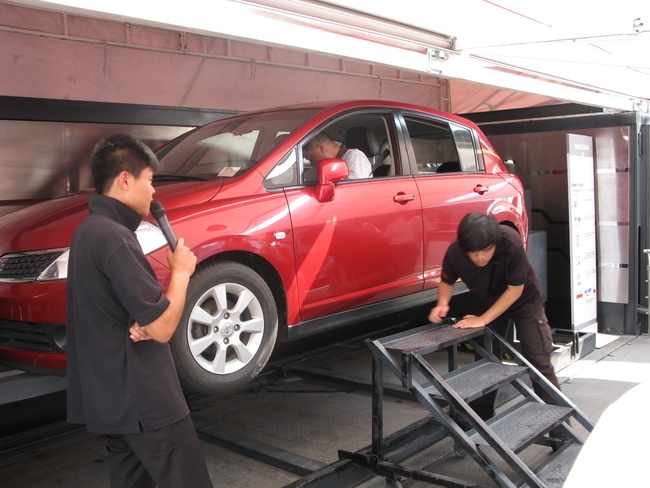 汽车侧翻被动安全体验区和GRT体验区一样都是日产车友最感兴趣的,大家纷纷上去体验!