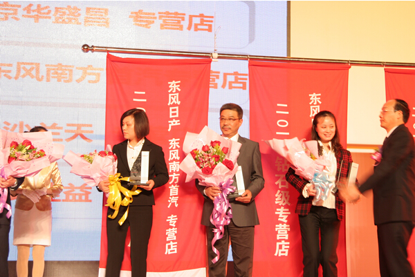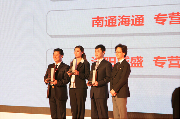 东风日产2010年度客户满意度大奖——东风日产南通海通专营店(上图左起第二位:海门海通专营店总经理丁秀丽女士)