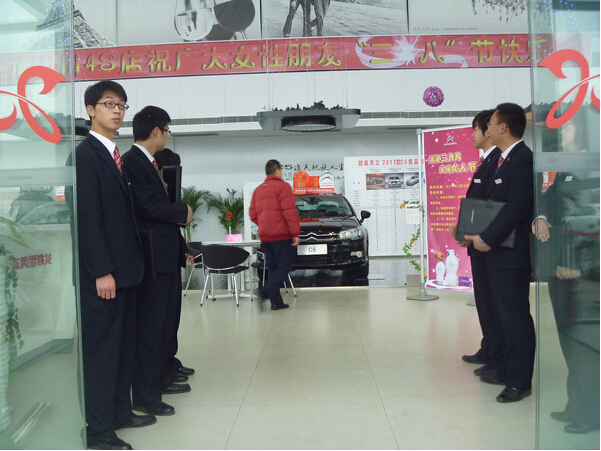 以来店女性客户即可参与由我公司提供的免费美容体验、营养咨询、并配合比日常优惠政策力度更大的促销政策。展厅布置“三八妇女节”祝福的横幅,展厅及车辆布置以藤蔓、花朵为主,营造生机、浪漫的活动氛围。对于当天订车的客户,东风雪铁龙南通崇川专营店还附赠一份针对女性的“守护天使”保险。