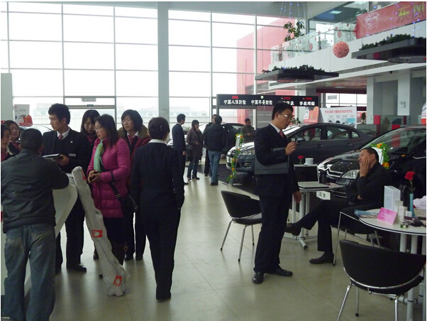 活动当日,销售顾问以饱满的姿态迎接的来店客户,并给每位来店女性送上祝福。