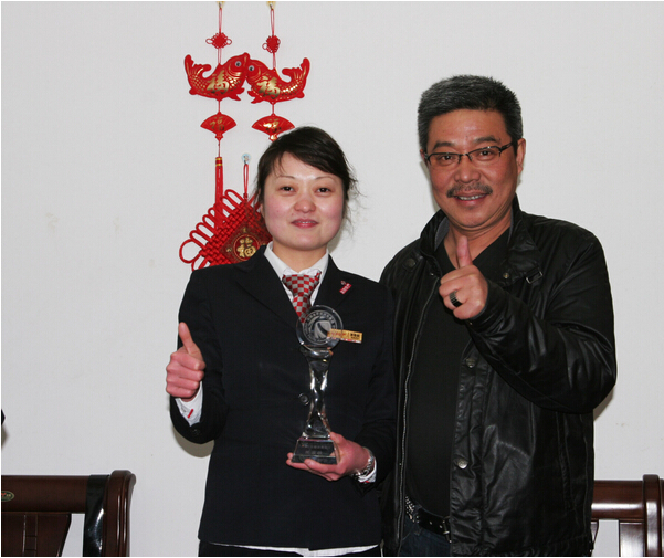 江苏太平洋汽车集团董事长丁进先生为陈敏敏颁发奖杯
