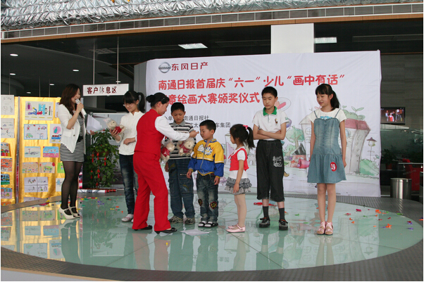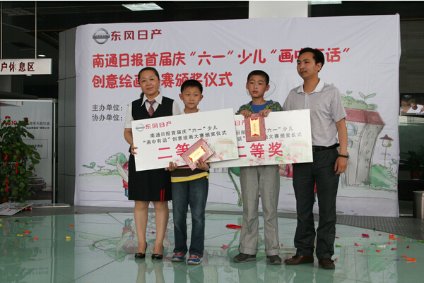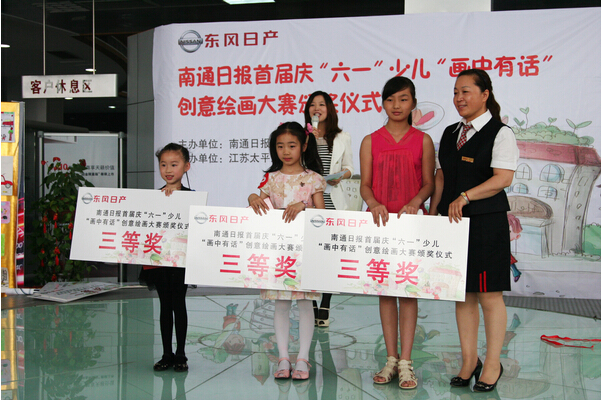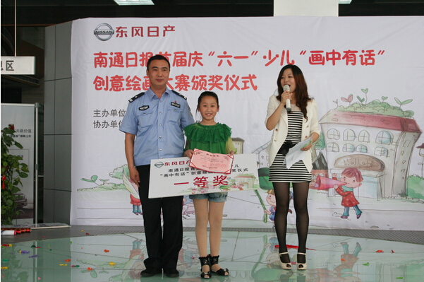 为着力培养少年儿童的交通安全意识,进一步推进“交通文明行动计划”的实施,在“六一”前夕,市公安局交巡警支队联合南通日报、崇川文联、东风日产南通名尼威专营店等四单位共同举办了全市首届少儿“画中有话”交通安全绘画作品大赛,旨在通过对儿童的交通安全意识培养,共同唤起社会对交通安全的关注。6月5日上午,四家单位主要负责人在东风日产南通名尼威专营店为6名获奖小选手颁发了一、二、三等奖,为20名小选手颁发了最佳创意奖,南通日报对获奖作品整幅刊载。此次活动通过“小手”牵“大手”的形式,将交通安全的警示和家人的期盼与关爱融入作品中,充分的展示出家长和广大少儿对道路交通安全重要性的认可与支持。