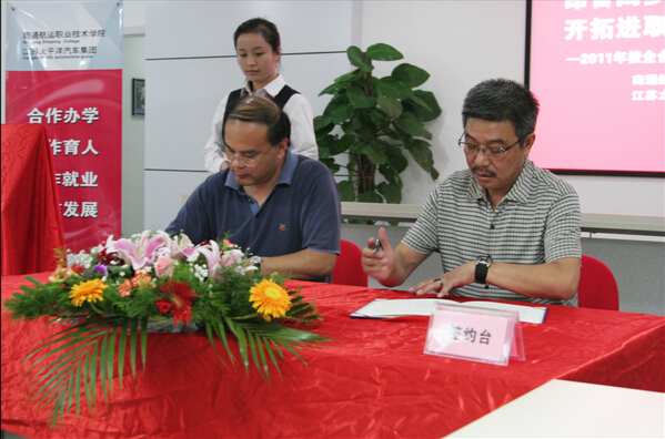 江苏太平洋汽车集团丁总与南通航运学院施院长签订校企合作协议