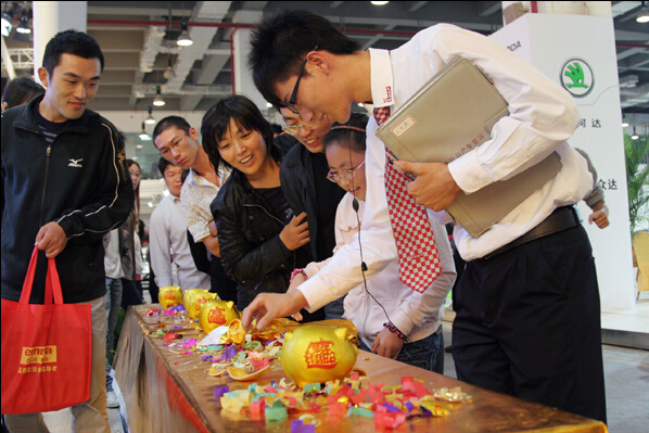 订车砸金猪百分百中奖,不一会金猪就所剩无几