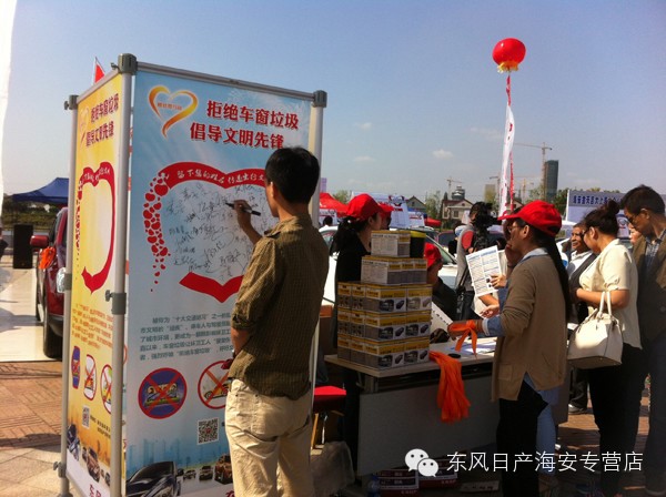 拒绝车窗垃圾,倡导文明先锋!我们的橙丝带活动进行的如火如荼,东风日产希望通过此次活动,能提高全社会对车窗垃圾的关注,打造美丽海安,共建美好家园!