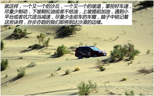 进入沙漠,是一项严肃的话题和实践。有经验的行者尚且不敢单枪匹马的进入,何况是没有经验的我们。沙漠之中,方向难辨,荒无人烟的沙漠腹地更是干旱至极。所以,专业的试驾教练和各种工作车以及脱困工具在壮大着我们虚弱的自信,驾驶着新奇骏,我们向沙漠中挺进。