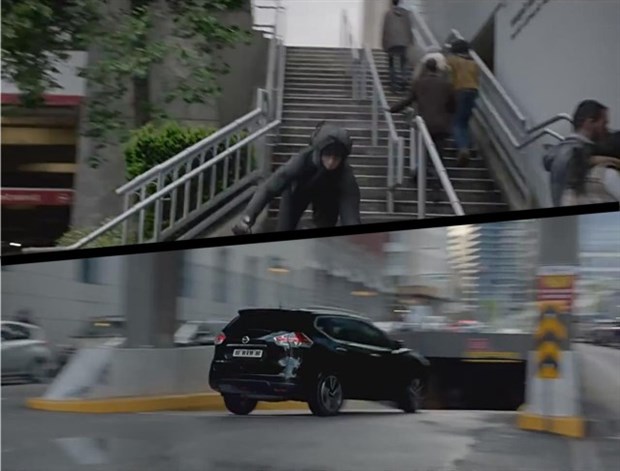 小偷踩着单车一路狂奔,男猪开车新奇骏穷追不舍。眼瞅着就要被追上了,小偷一个急刹过弯,以为可以甩掉笨重的新奇骏。但他没料到,新奇骏自带3A公路稳行系统,保证了大质量车身的精准过弯,让新奇骏尾随着小偷在公路上划出完美的弧线。