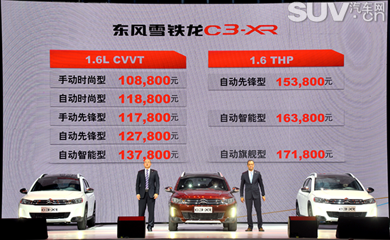 2014年12月21日,雪铁龙·东风雪铁龙品牌嘉年华暨C3-XR上市发布会在上海举行,展现雪铁龙近百年的荣耀和东风雪铁龙22年的辉煌,精彩诠释舒适、时尚、科技的品牌优势。作为东风雪铁龙品牌中期规划“龙腾C计划”的重磅车型,C3-XR震撼上市,包括1.6L CVVT和1.6THP两种动力总成,共8款车型,售价10.88万元-17.18万元。