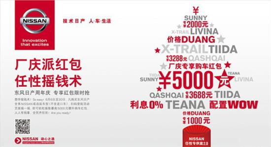 想学摇钱术?So easy!6月6日至30日,凡购买东风日产全系NISSAN或启辰车型(不含进口车),登陆活动页面摇一摇,即可轻松摇取最高5000元额外购车红包。人人有钱拿,全民齐狂欢!Are you ready?