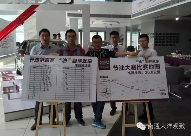 比赛咯......比赛路线从店内出发沿着S336省道一直开到海门大转盘调头往回走。全程大约29公里,不限时间全程视频记录参赛过程。以低于观致店选手油耗者获得奖金。