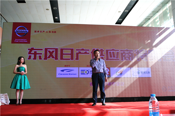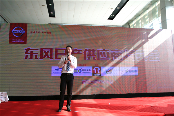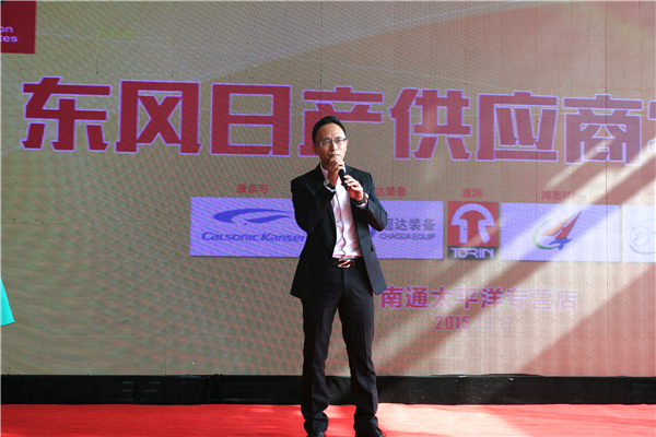 东风日产采购部严奉新部长为本次活动致辞,他从天和、地利、人和三个方面阐述了东风日产厂家、供应商、经销商之间鱼与水的关系,严部长对此次活动给予了高度的赞扬和肯定,同时希望供应商员工能够购买到心仪的爱车。